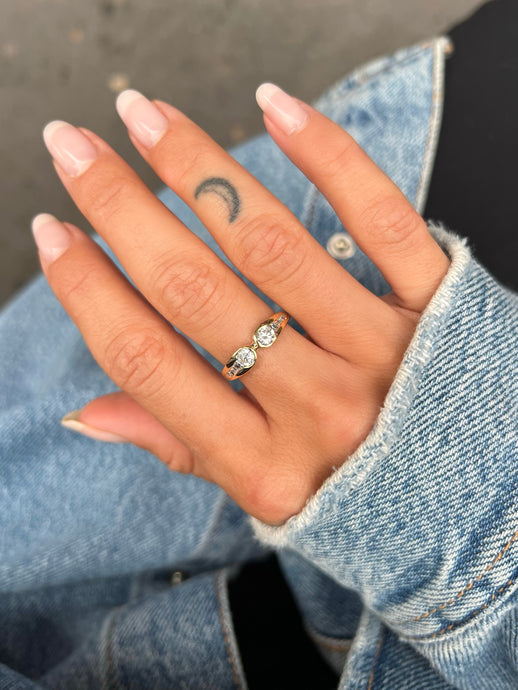 Bague Trilogie Diamants Anciens Serti Clos