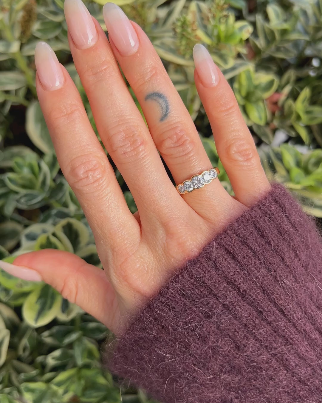 Élégante et intemporelle, cette bague vintage en or jaune 18 carats (750 millièmes) est ornée d’un sertissage semi clos et en escalier de 5 diamants taille brillant, offrant un superbe jeu de lumière. Les diamants, de couleur estimée F et de pureté estimée SI, totalisent 1,03 carat, pour un éclat remarquable sans excès.