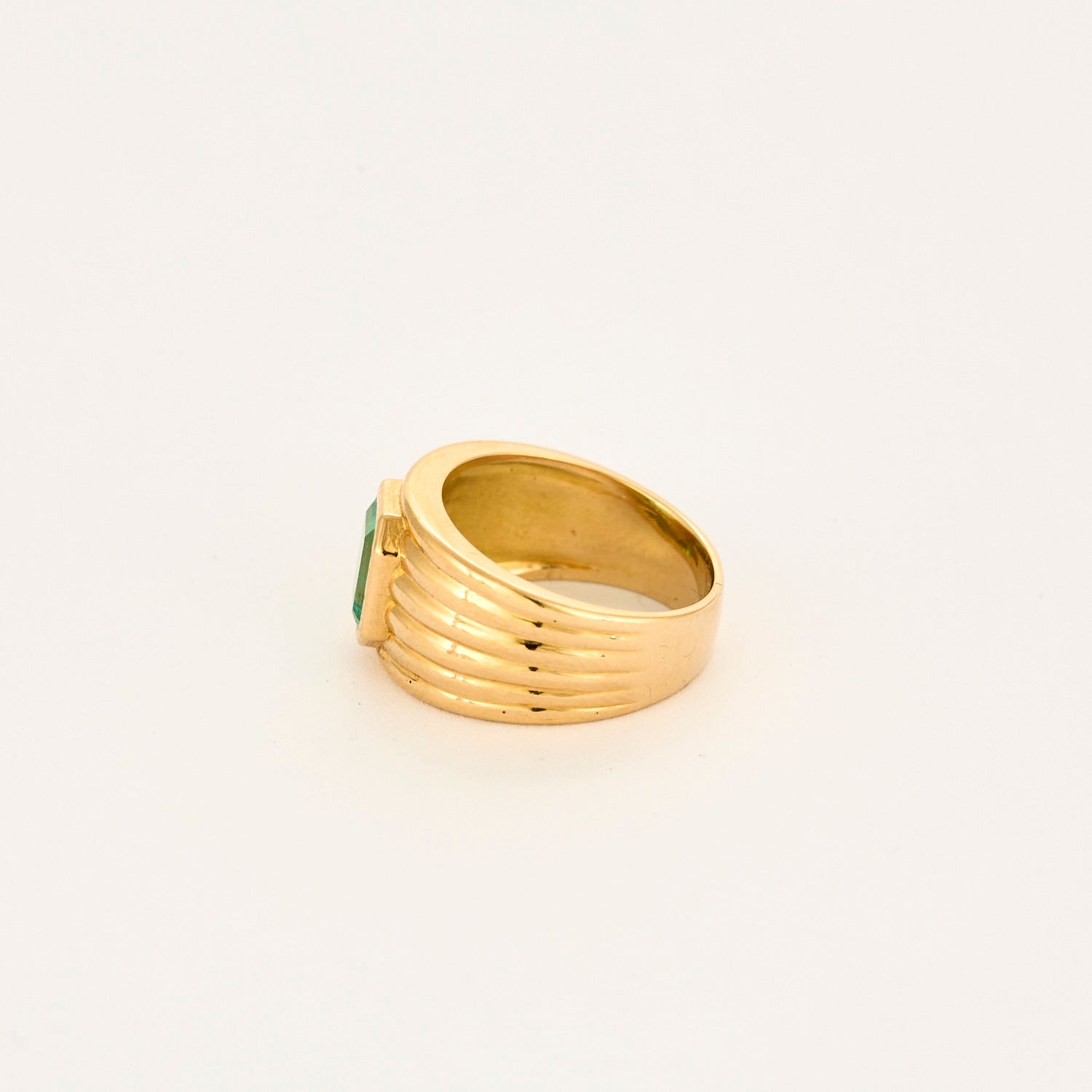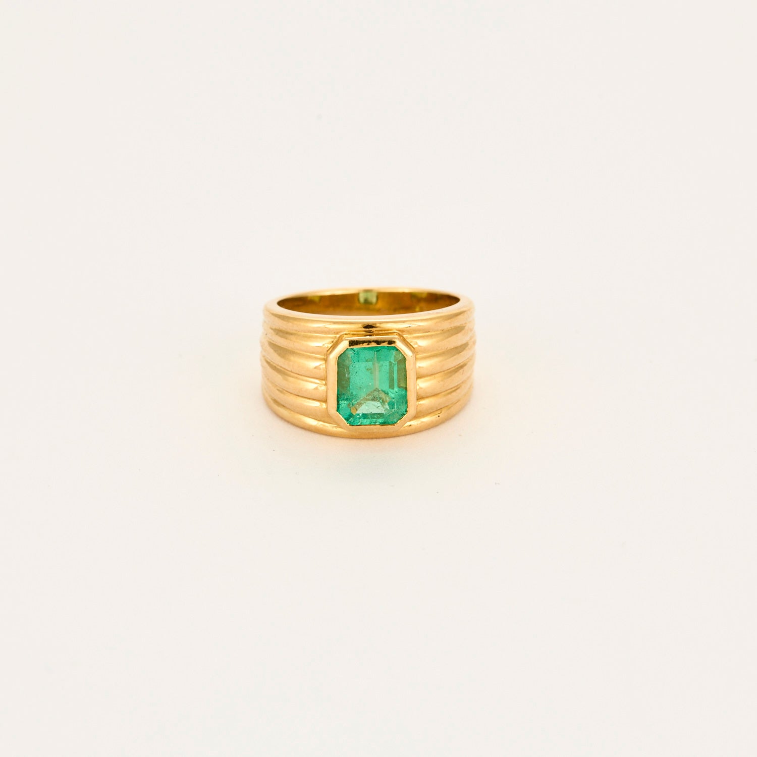 Cette bague vintage en or jaune 18 carats (750 millièmes) est sertie d'une sublime émeraude de Colombie.