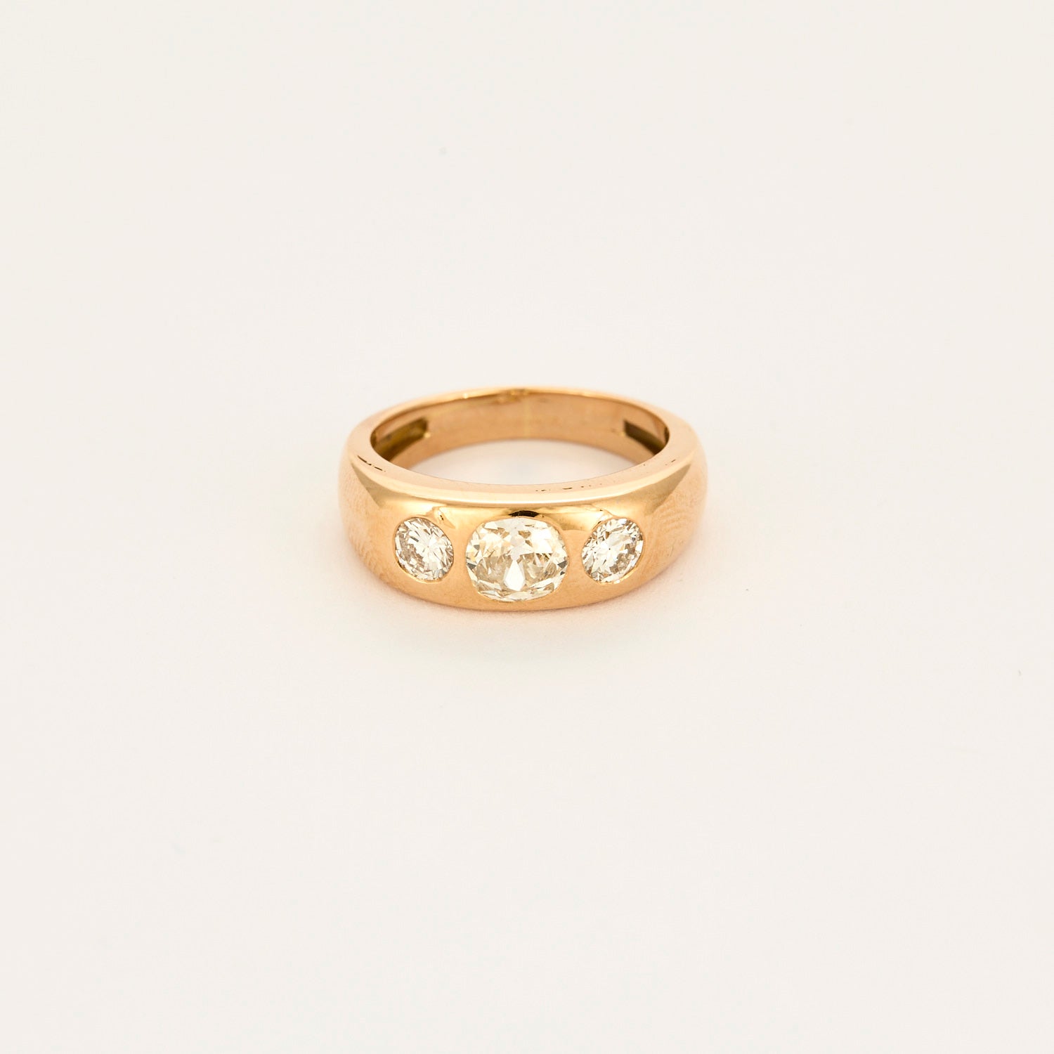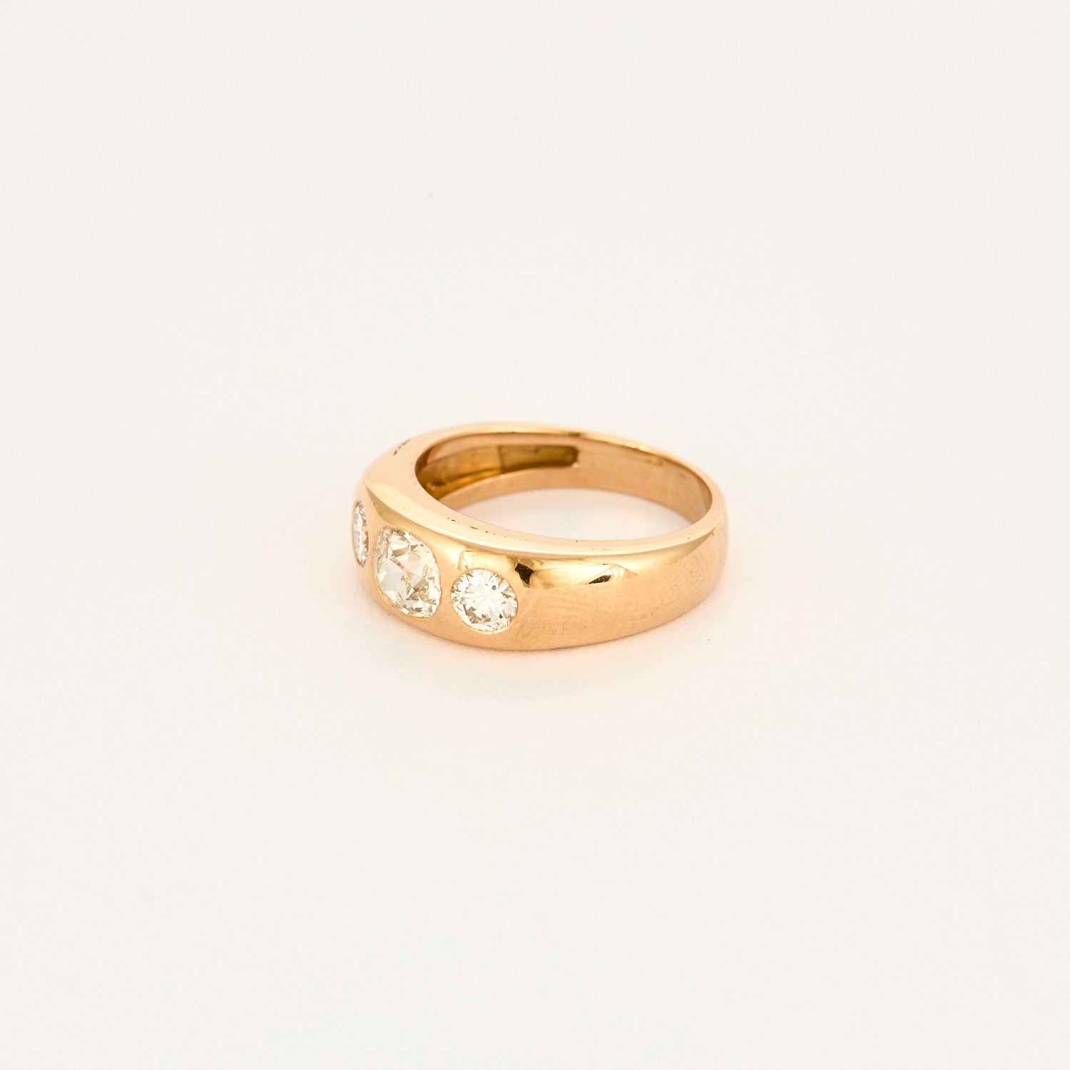 Très bon état, bague repolie. Un infime choc au diamant central, visible à la loupe 10X, invisible à l'oeil nu.