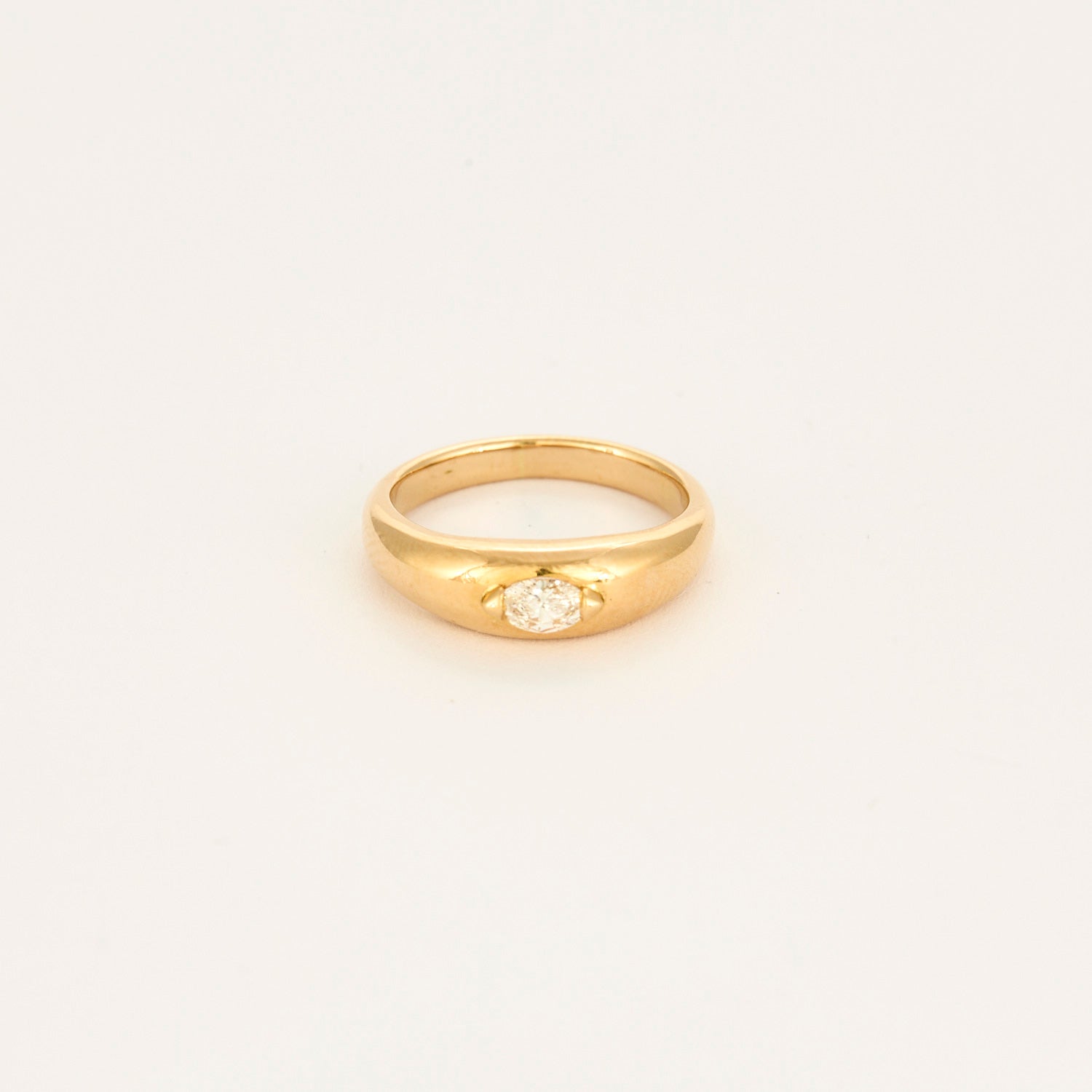 Cette belle bague jonc or jaune 18 carats (750 millièmes) est sertie d'un diamant taille marquise de 0.25 carat environ.