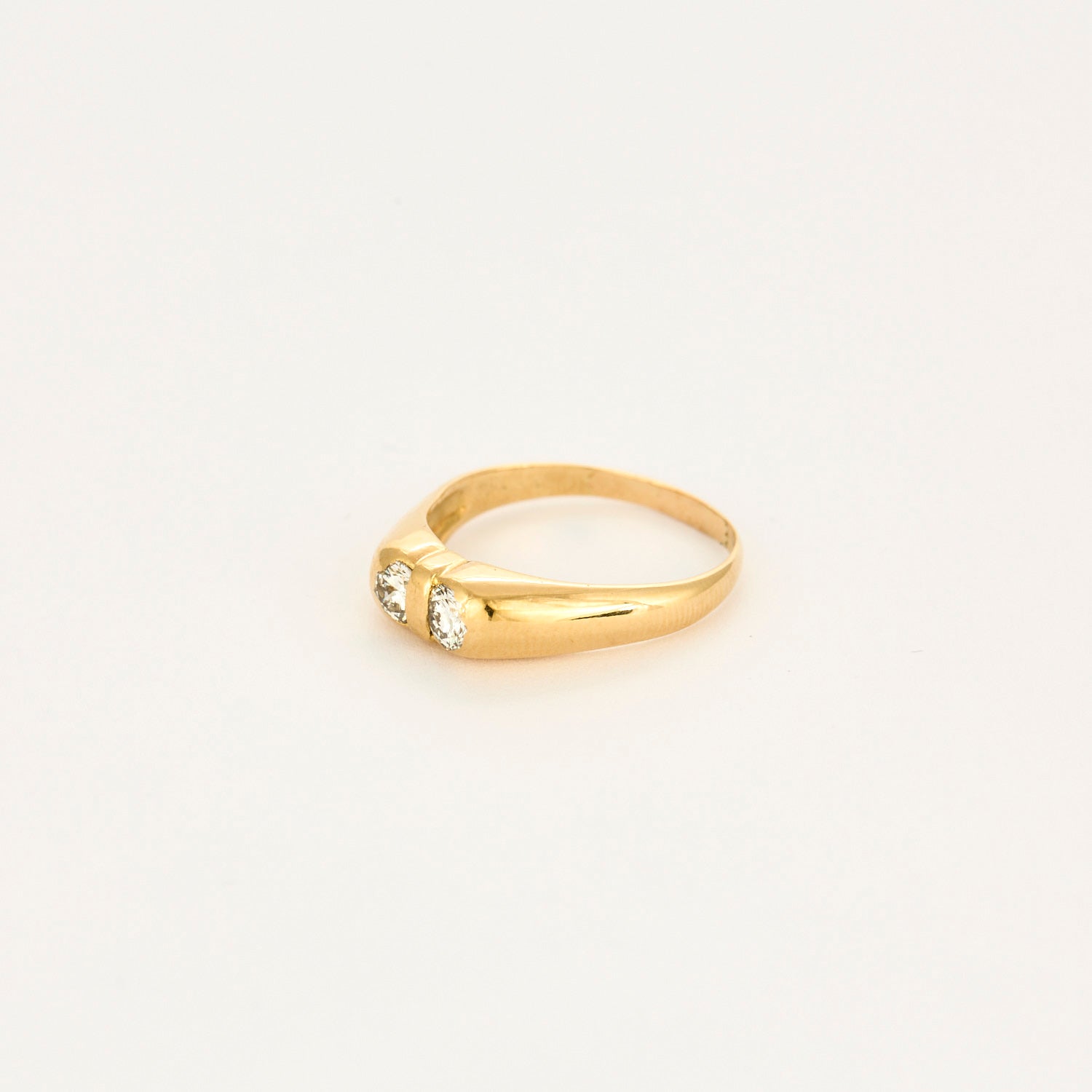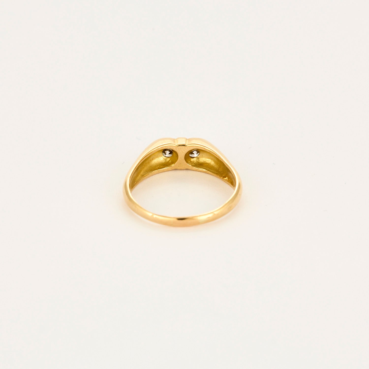 Cette jolie bague en or jaune 18 carats (750 millièmes) est sertie de 2 diamants taille brillant de 0.25 carat chaque, soit un poids total estimé de 0.50 carat environ.