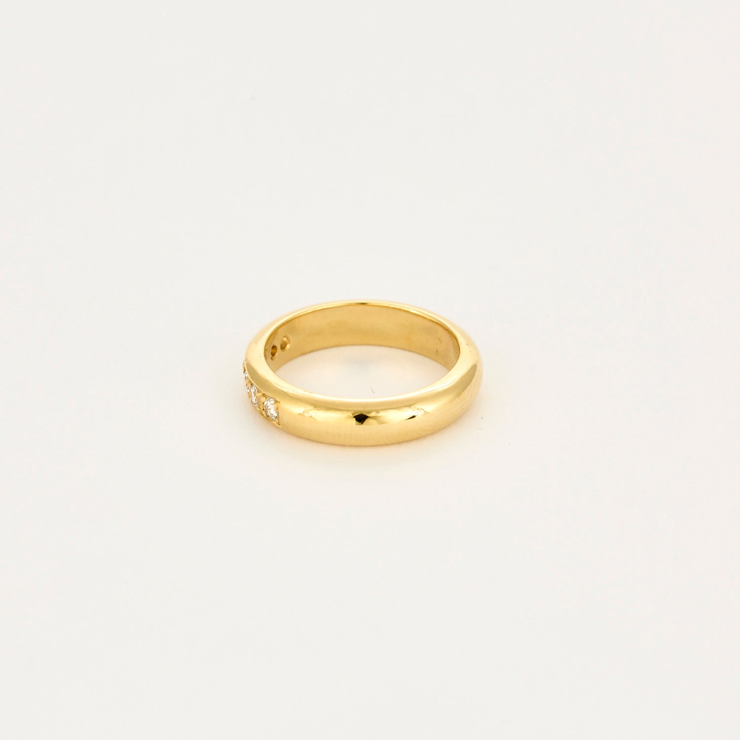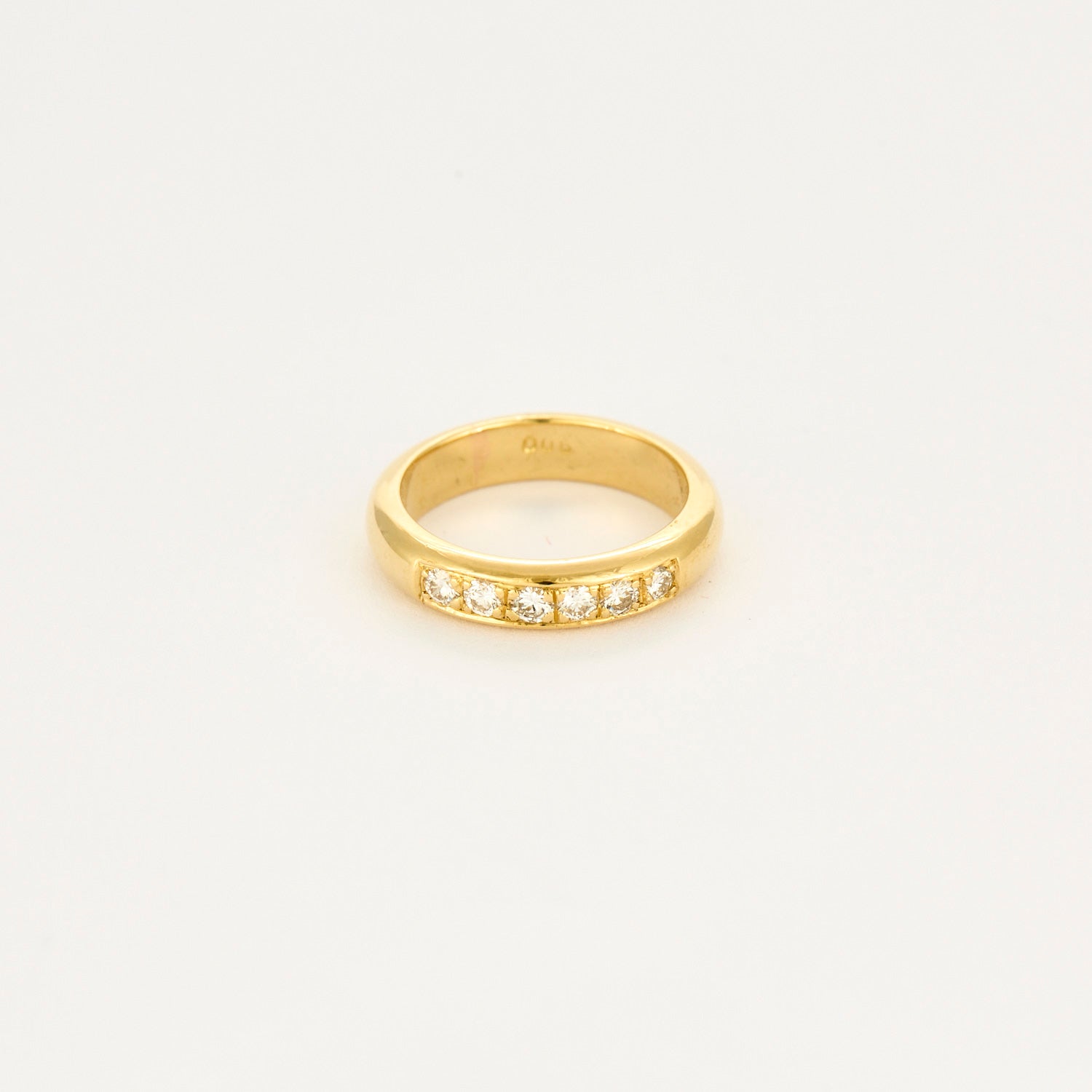 Cette belle bague en or jaune 21,6 carats (900 millièmes) est sertie de 6 petits diamants taille brillant pour un poids total estimé à 0.36 carat.