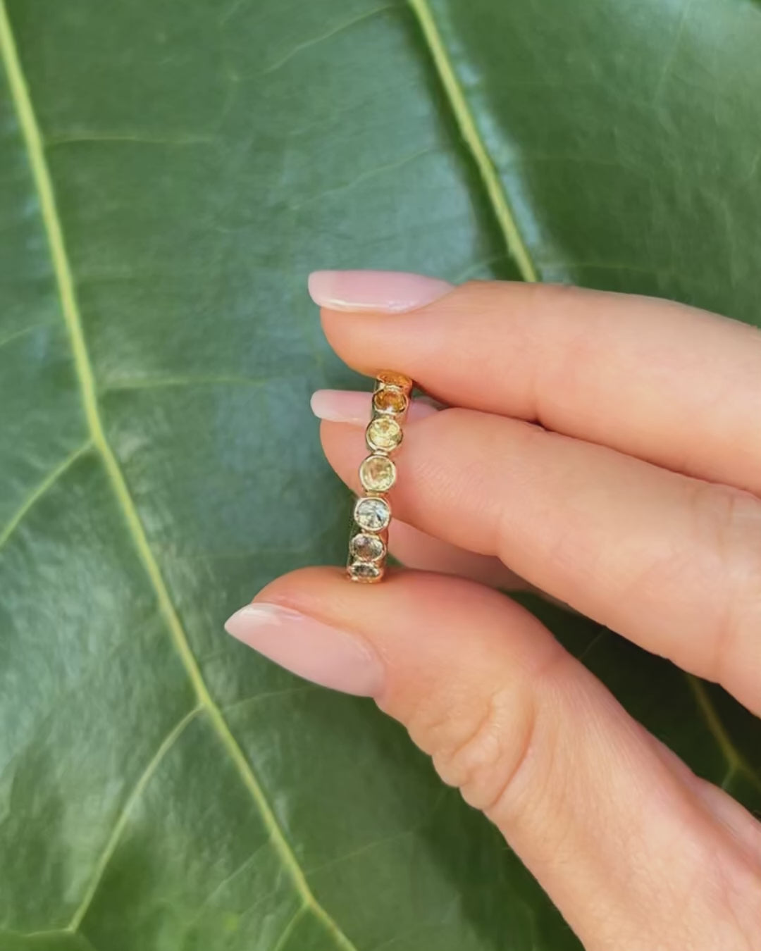 Chaque bague est unique, les teintes des pierres varient légèrement d’une bague à l’autre.