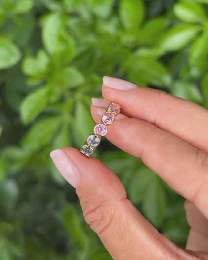 Or jaune 18 carats (750 millièmes) et saphirs multicolores.