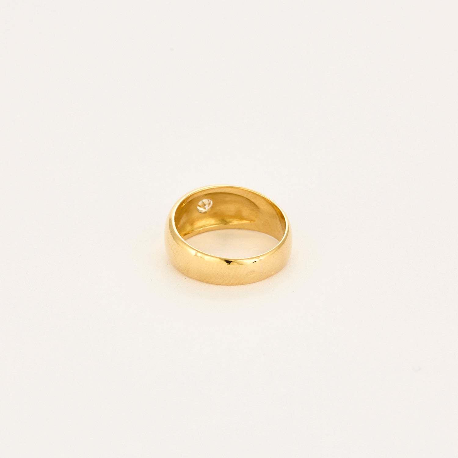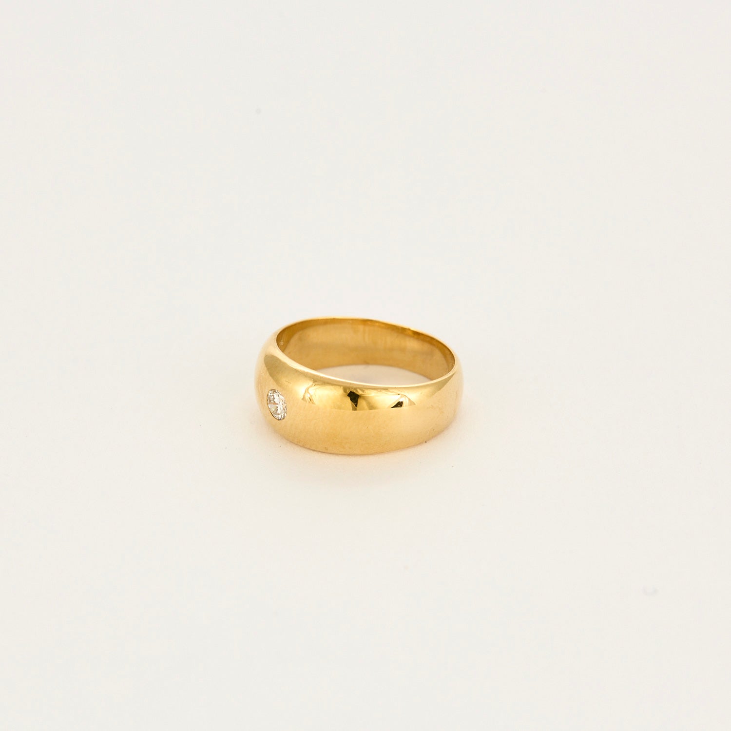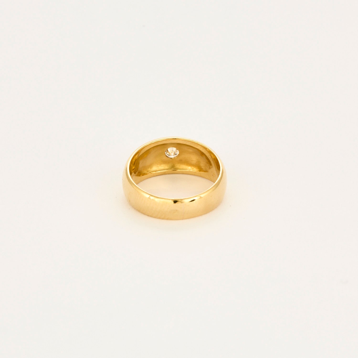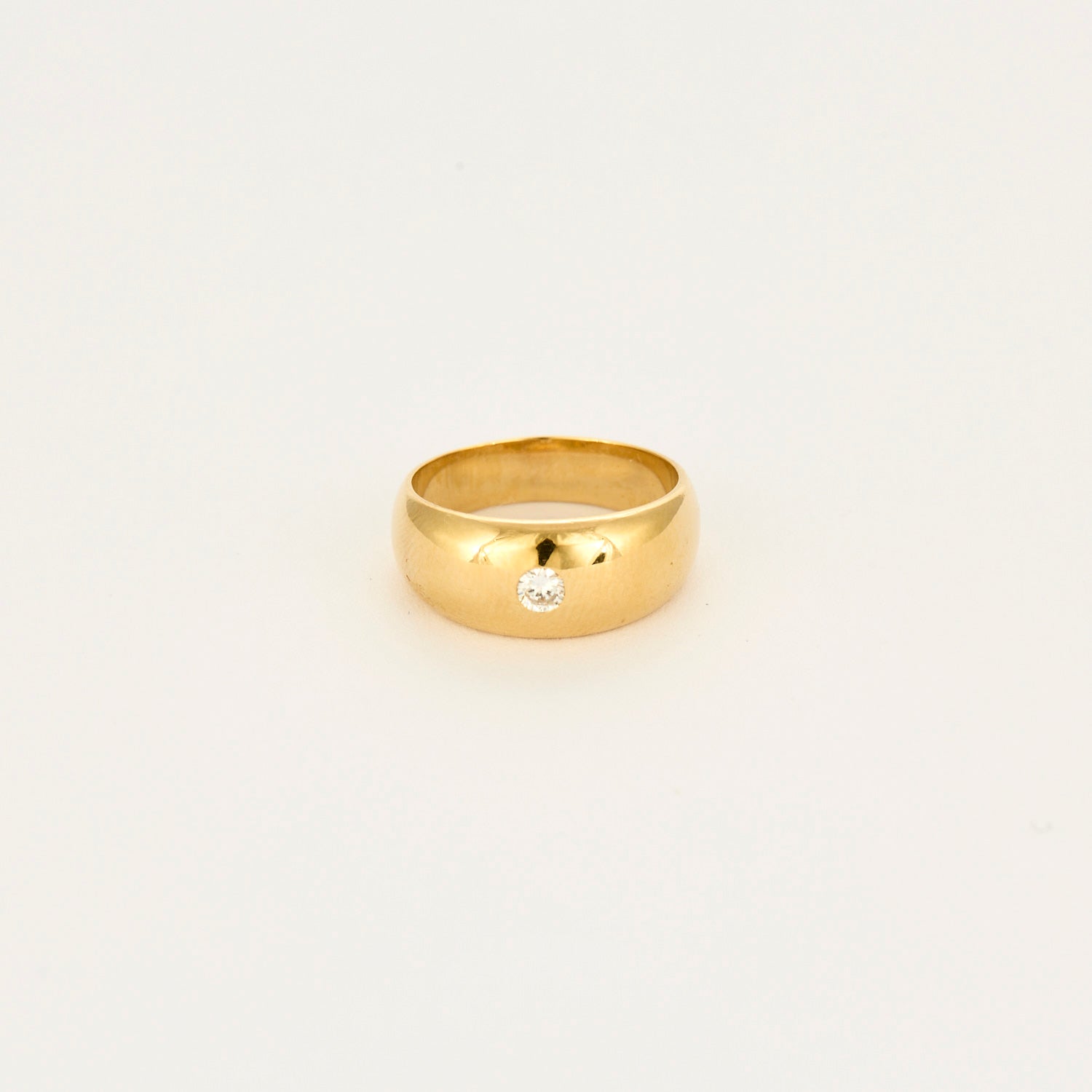 Cette belle bague jonc or jaune 18 carats (750 millièmes) est serti d'un petit diamant taille brillant de 0.08 carat.