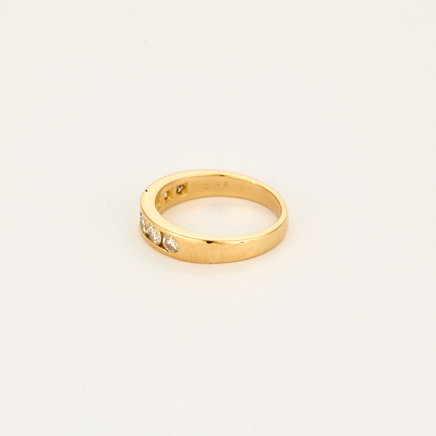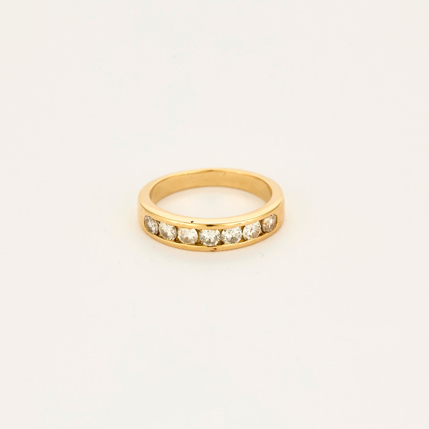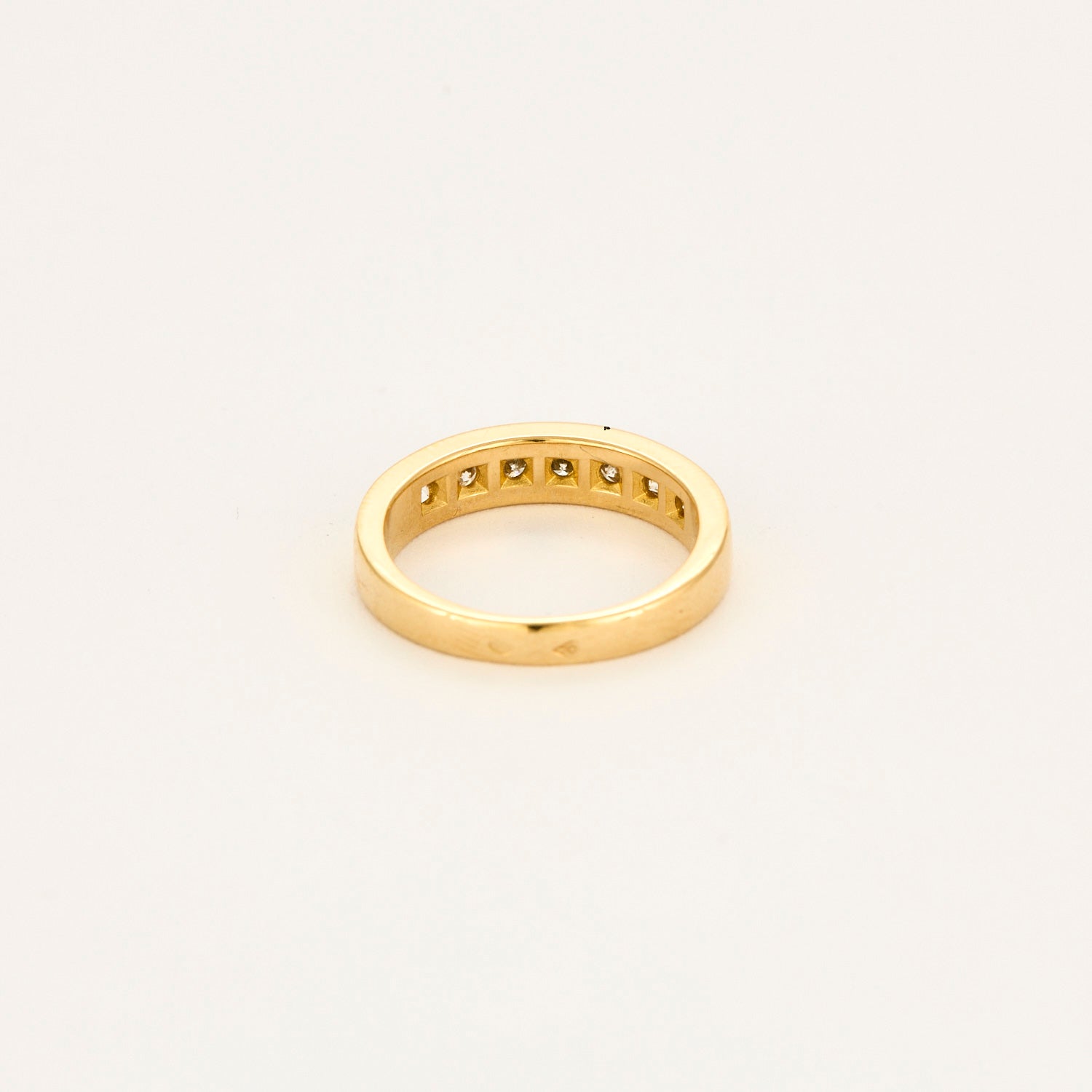 Cette très jolie demi alliance en or jaune 18 carats (750 millièmes) est sertie de 7 diamants taille brillant d'un poids total estimé à 0.80 carat environ.