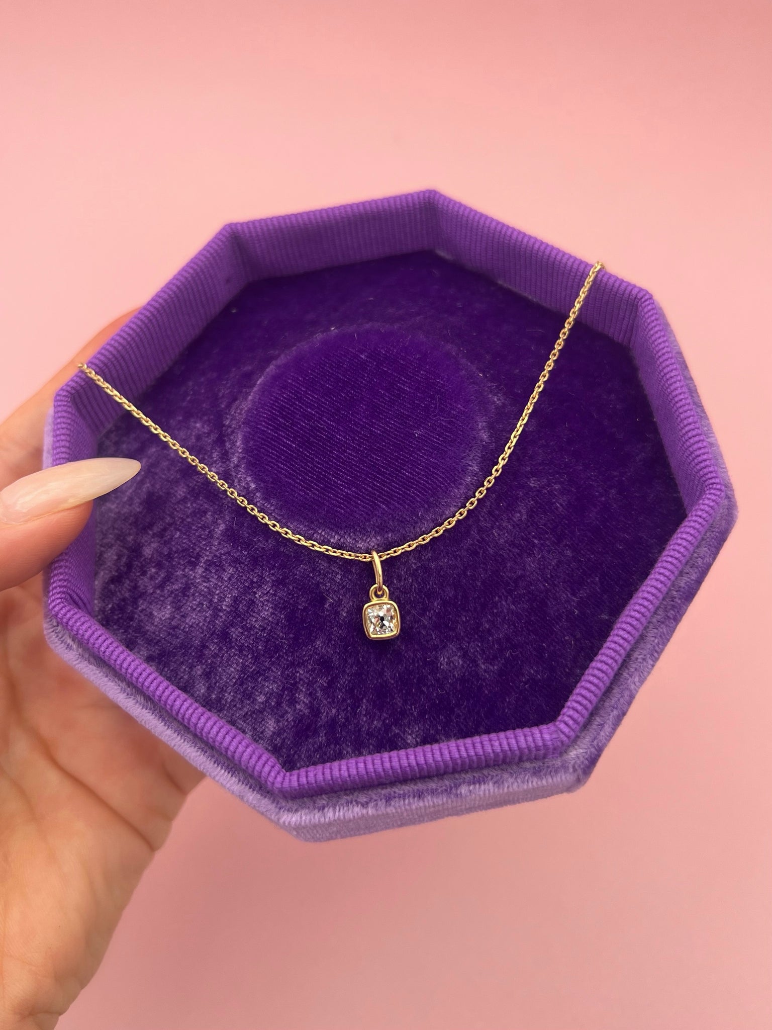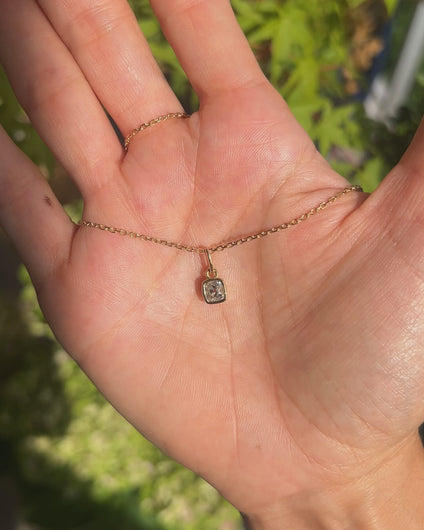 Un magnifique pendentif or jaune 18 carats (750 millièmes) serti d'un diamant taille ancienne (taille Peruzzi) de 0.62 carat. Caractéristiques présumées : L/SI2